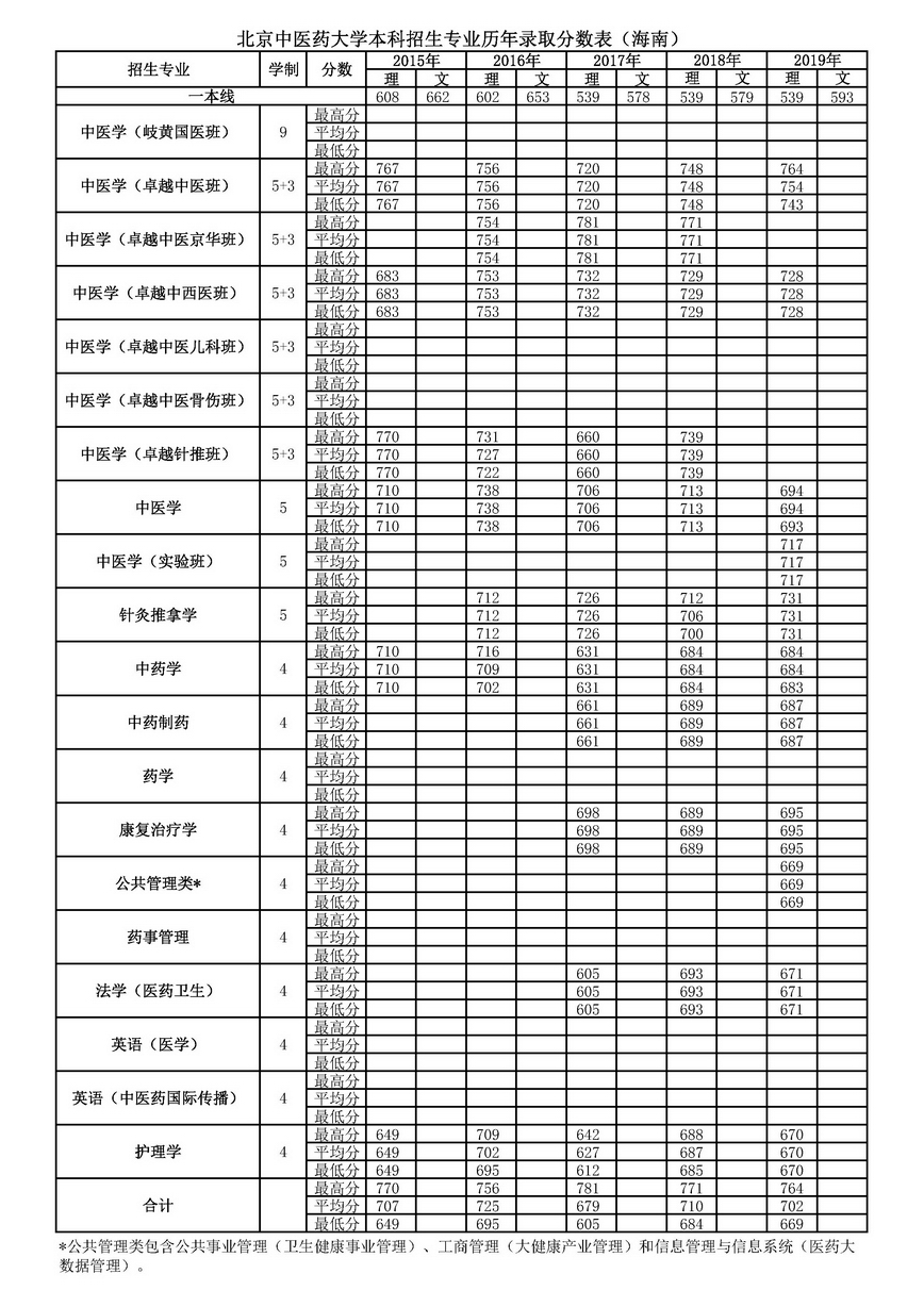 海南历年录取分数表