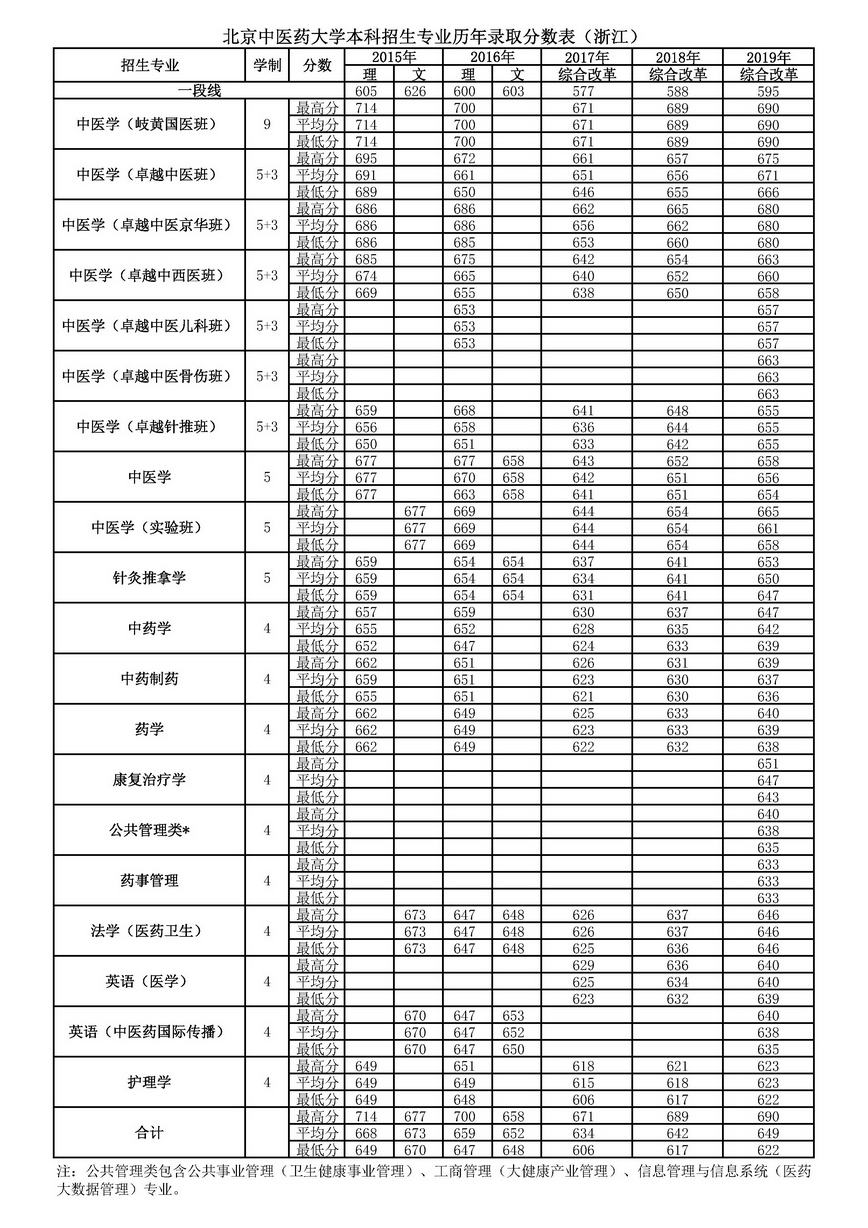 浙江历年录取分数表