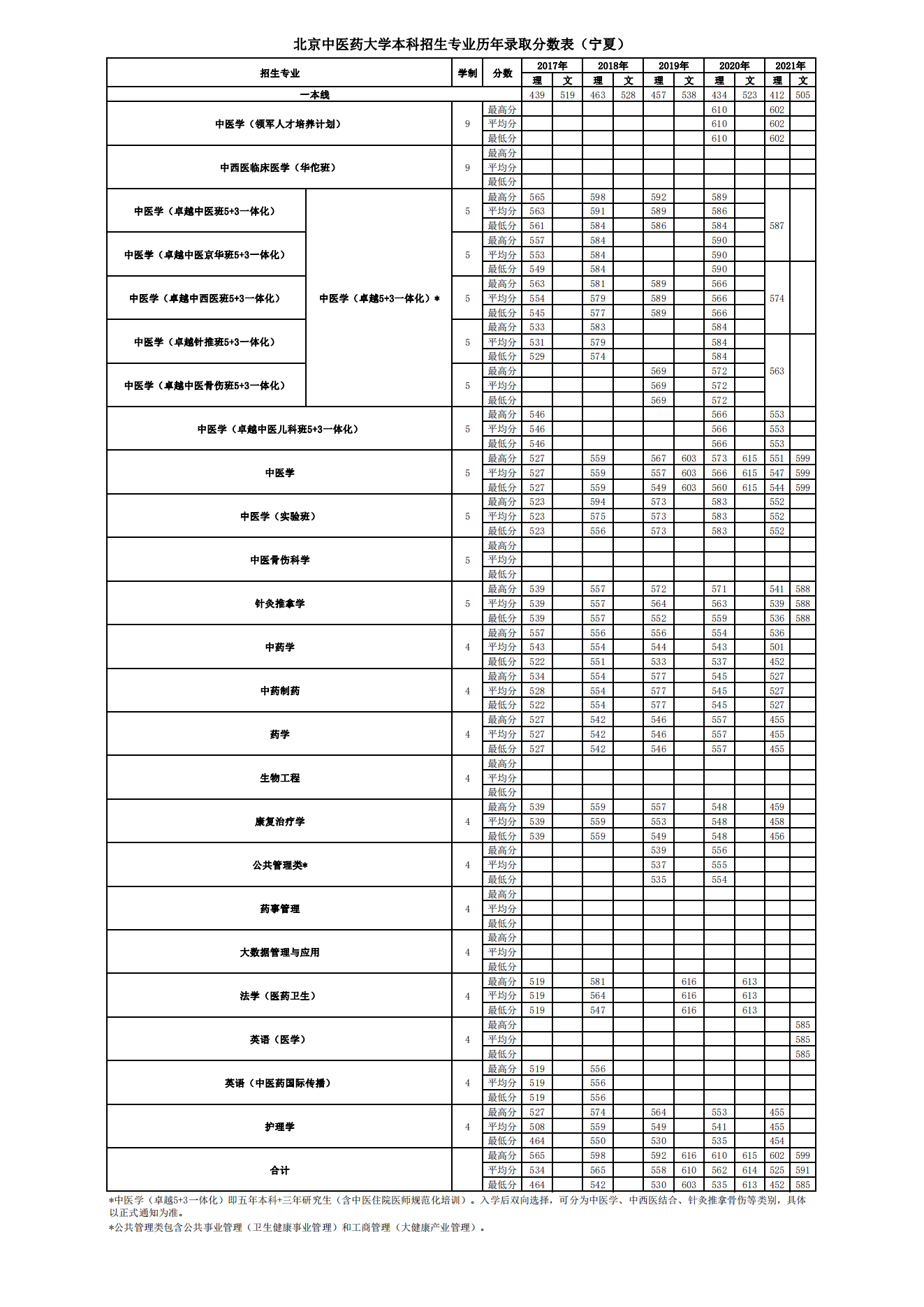 宁夏历年录取分数表