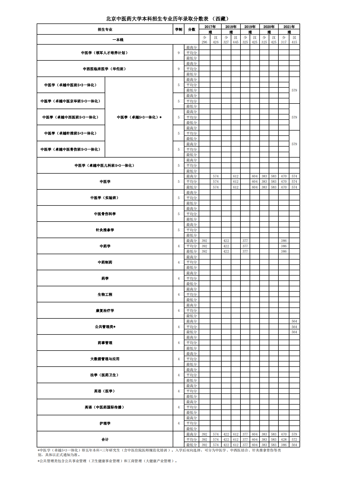 » 西藏历年录取分数表