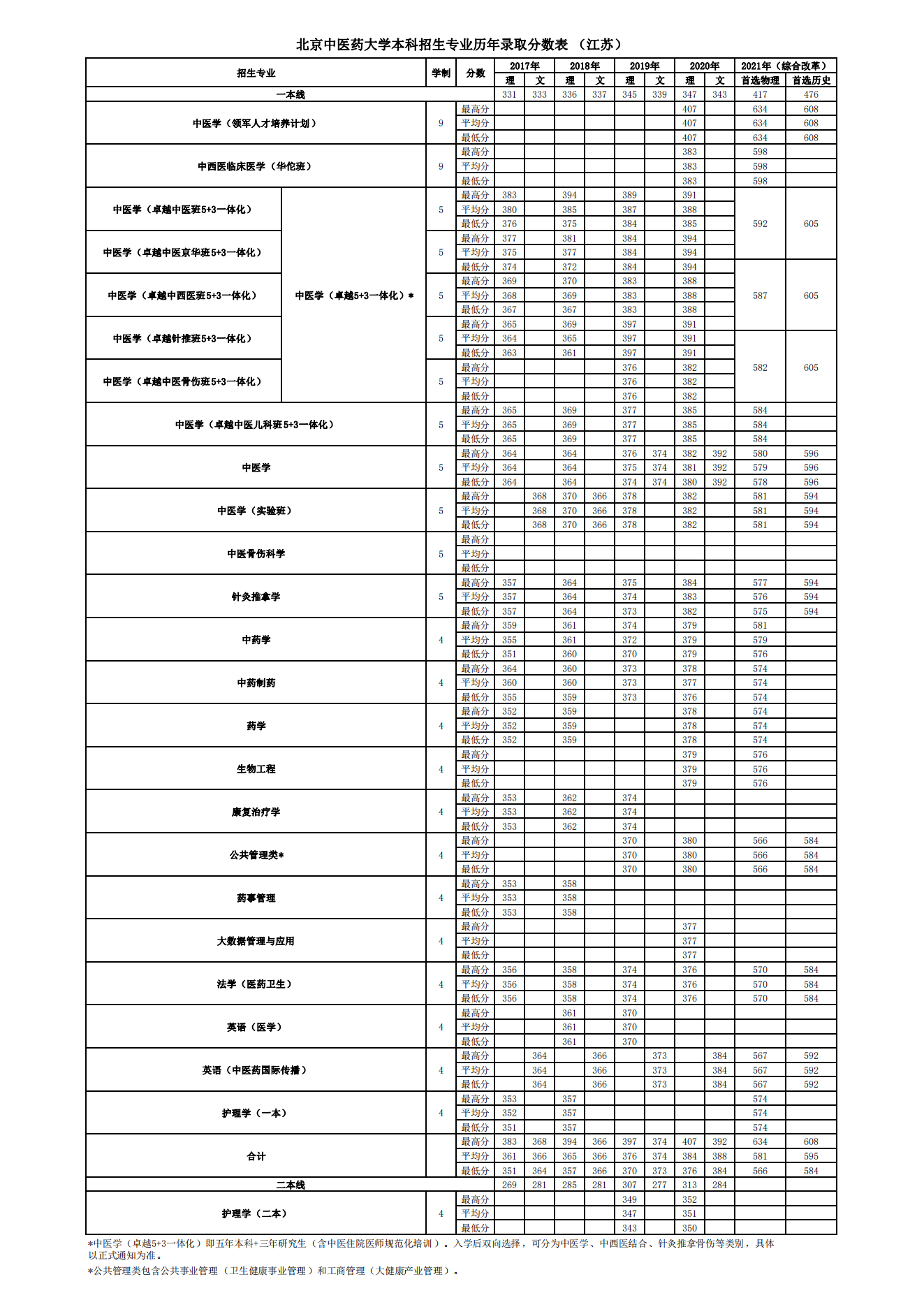 江苏历年录取分数表