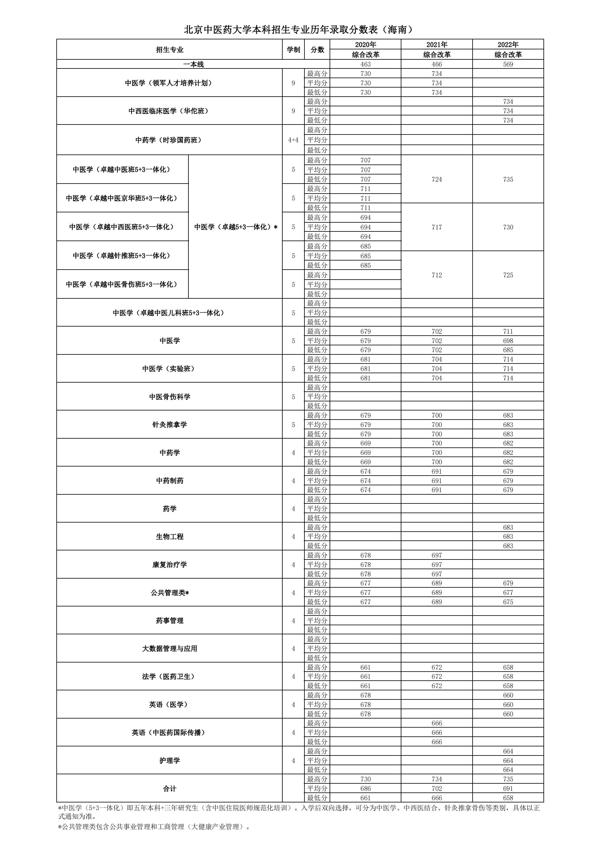 海南2020~2022年录取分数表