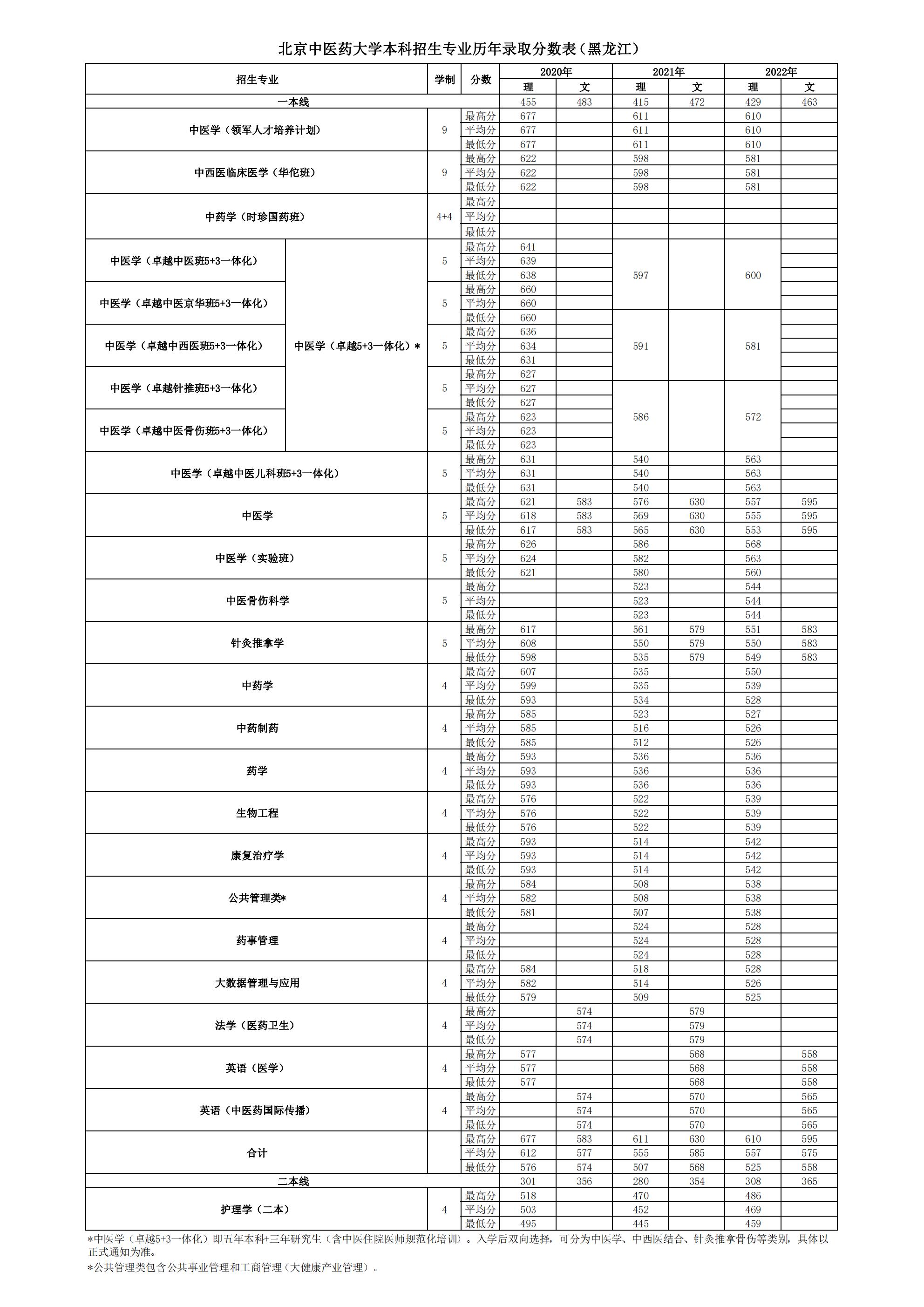 » 黑龙江2020~2022年录取分数表