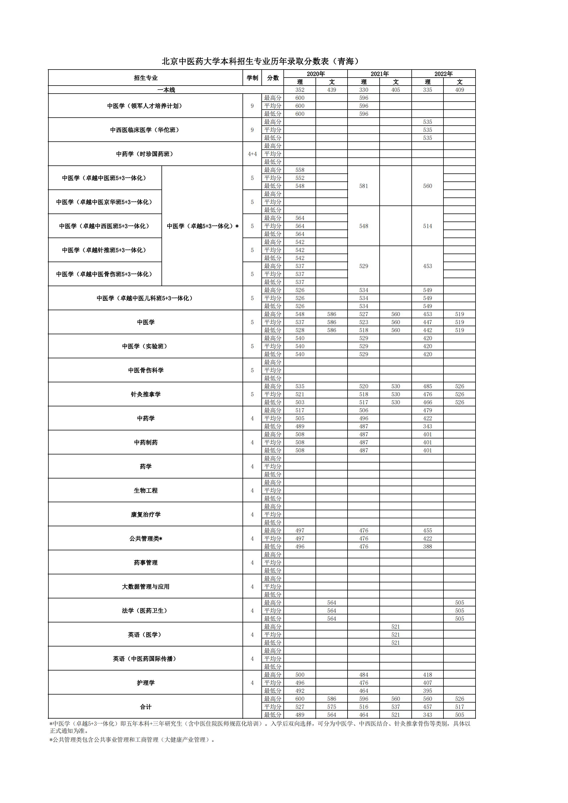 » 青海2020~2022年录取分数表