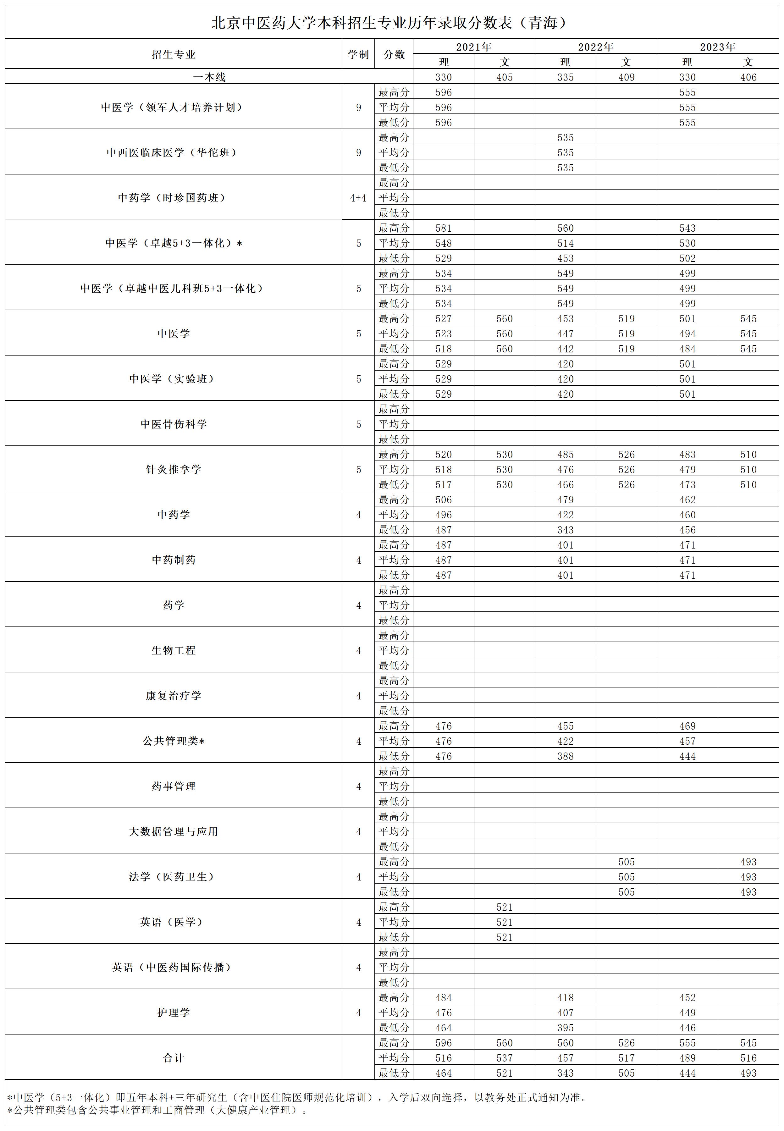 » 青海2021~2023年录取分数表
