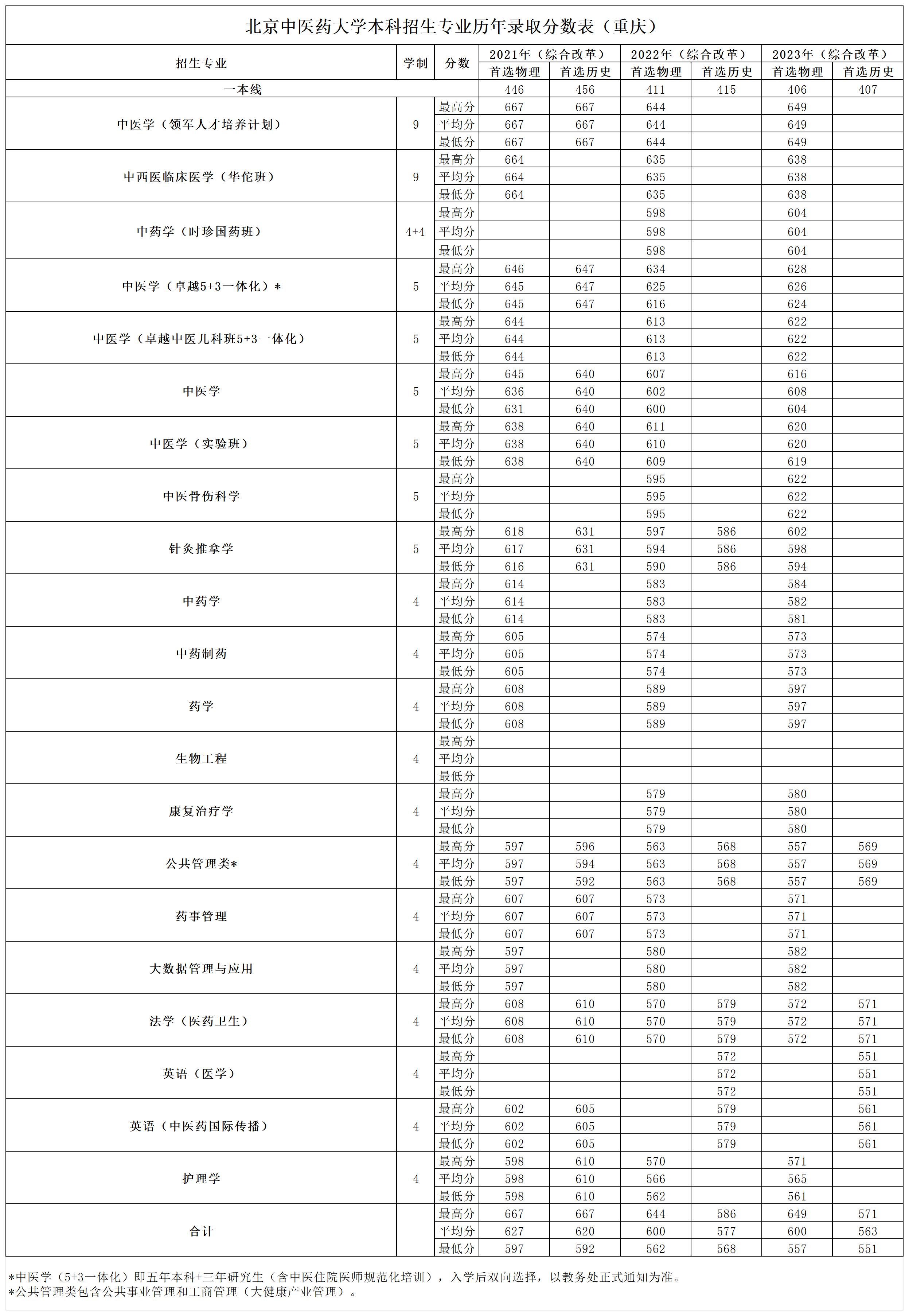 重庆2021~2023年录取分数表