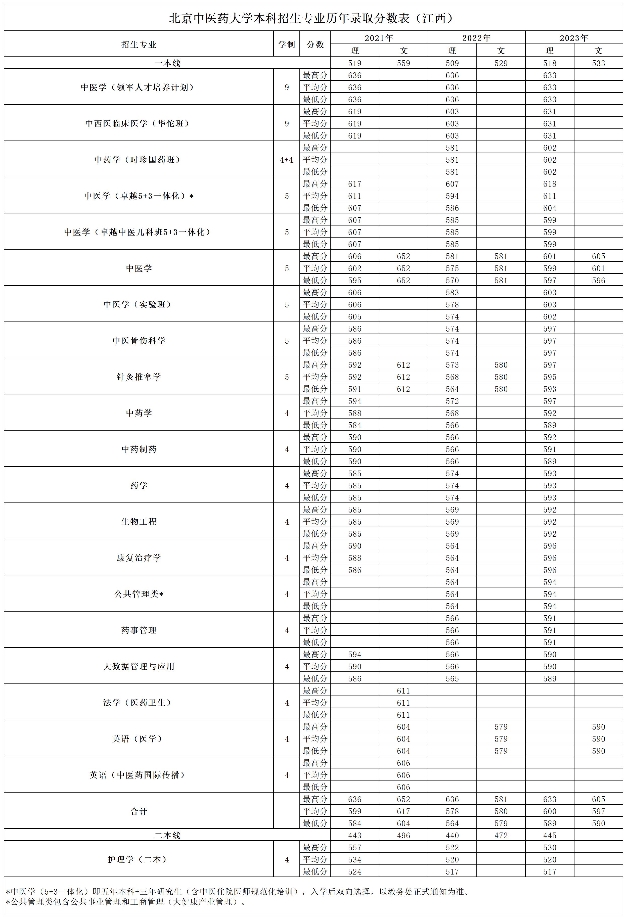 江西2021~2023年录取分数表