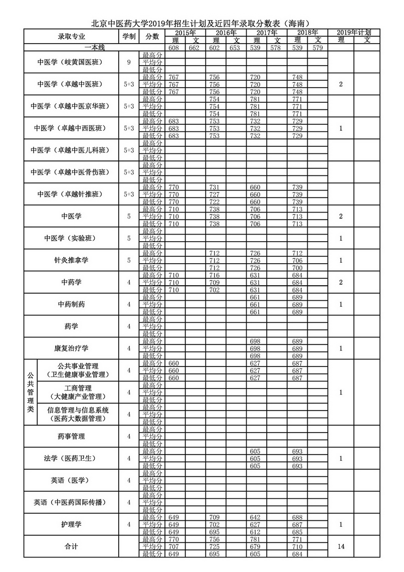 海南2019年招生计划及近四年录取分数