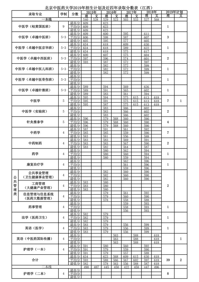 江西2019年招生计划及近四年录取分数