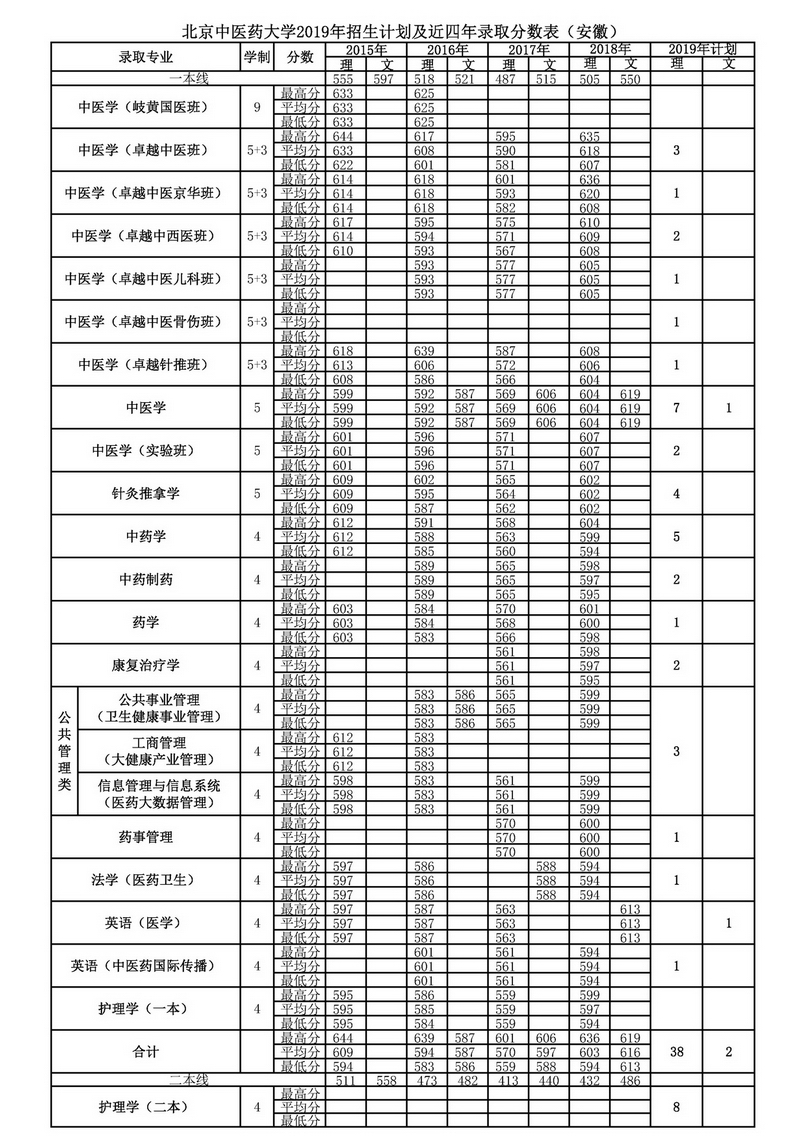安徽2019年招生计划及近四年录取分数