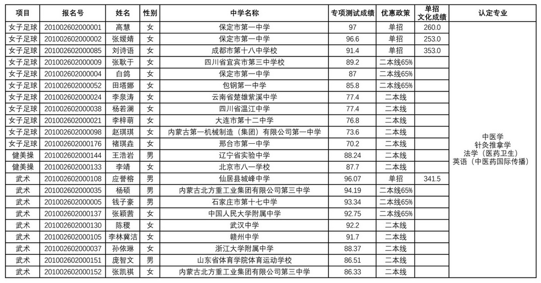 根据《yl7703永利集团2020年高水平运动队招生简章》,经我校招生工作领导小组研究决定,现将我校2020年高水平运动队入选资格考生名单公示如下(还需经阳光高考平台公示无异议后资格方可有效)。优惠政策为文化课单考的考生参加国家体育总局组织的文化课统考合格分数线为210分。考生可通过报名系统查看高水平运动队专项测试成绩。