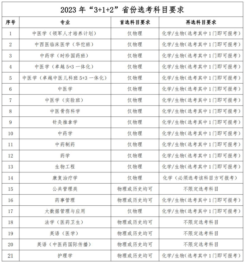 为方便高考改革地区考生做好学业规划,现将我校2023及2024年本科招生专业选考科目暂定要求公布如下: