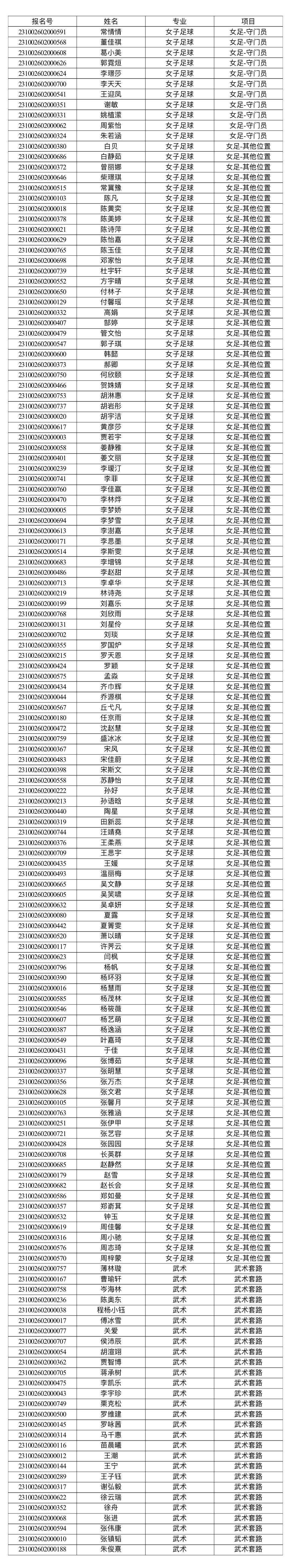经审核,以下考生通过2023年高水平运动队初审(名单按报名号排序):