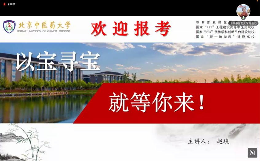 6月18日,受北京西城外国语学校邀请,我校与首都医科大学、北京工商大学、首都经济贸易大学等多所高校同台直播,我校博士生导师、岐黄国医班导师赵琰教授主讲;6月23日,我校于腾讯会议平台推出《2022北中医高招咨询会——北京专场》主题直播,我校博士生导师、岐黄国医班导师赵琰教授、优秀教学管理人员王东老师主讲。两场直播,共计二百余名家长、考生观看直播。