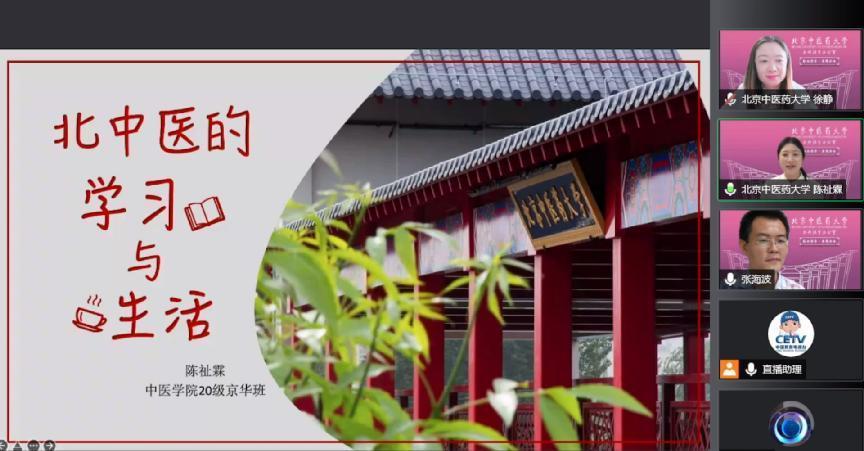 中医学院在读学生陈祉霖同学从学习生活、课外活动、校园环境以及食宿环境四个方面介绍了大美北中医,并表示自己入学两年来从各个方面感受到了中医的神秘与深奥魅力。