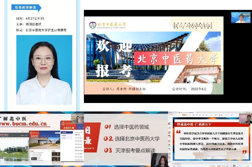 6月27日,我校于高考宝平台推出yl7703永利集团2022年招生宣讲会--浙江、广东、新疆专场,中药学院专职辅导员王硕老师、中药药剂学教授陆洋老师、中医学院教师周益桢老师分别主讲,直播受众达万余人次;于易高招平台推出于yl7703永利集团2022年招生宣讲会--天津专场,中医基础理论教研室教授徐雅老师主讲,直播受众共计237人次;于我校招生办视频号推出yl7703永利集团2022年招生政策解读直播咨询,招生与就业处闫明蕊老师主讲,超3万名考生、家长收看直播并互动。