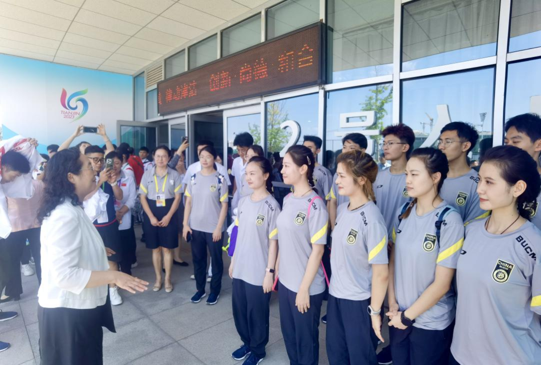 王瑶琪书记在开幕式结束后看望慰问我校代表团成员,并为运动健儿作激情动员。