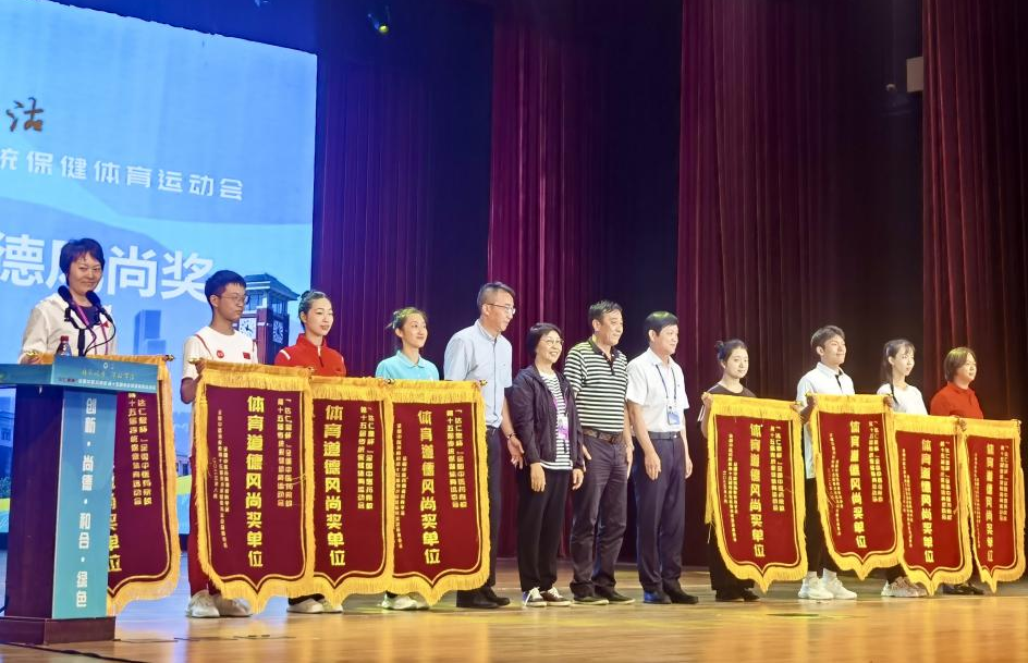 闭幕式上,研究会副理事长、第十五届传运会仲裁委员会主任、体育教学部林北生老师宣布本届传运会优秀运动员、教练员、裁判员及体育道德风尚奖获奖名单,并与参会领导一起为获奖的单位与个人颁奖。
