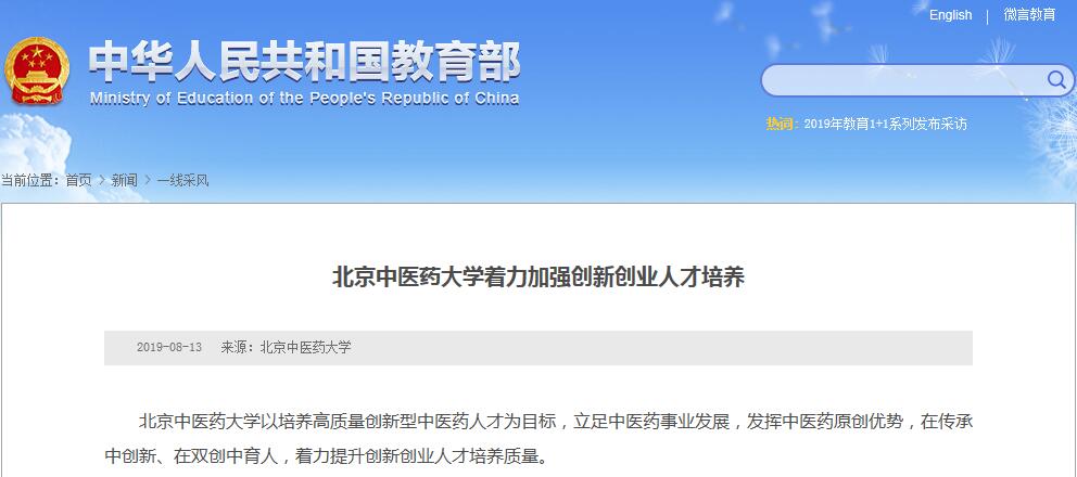 教育部网站报道我校着力加强创新创业人才培养