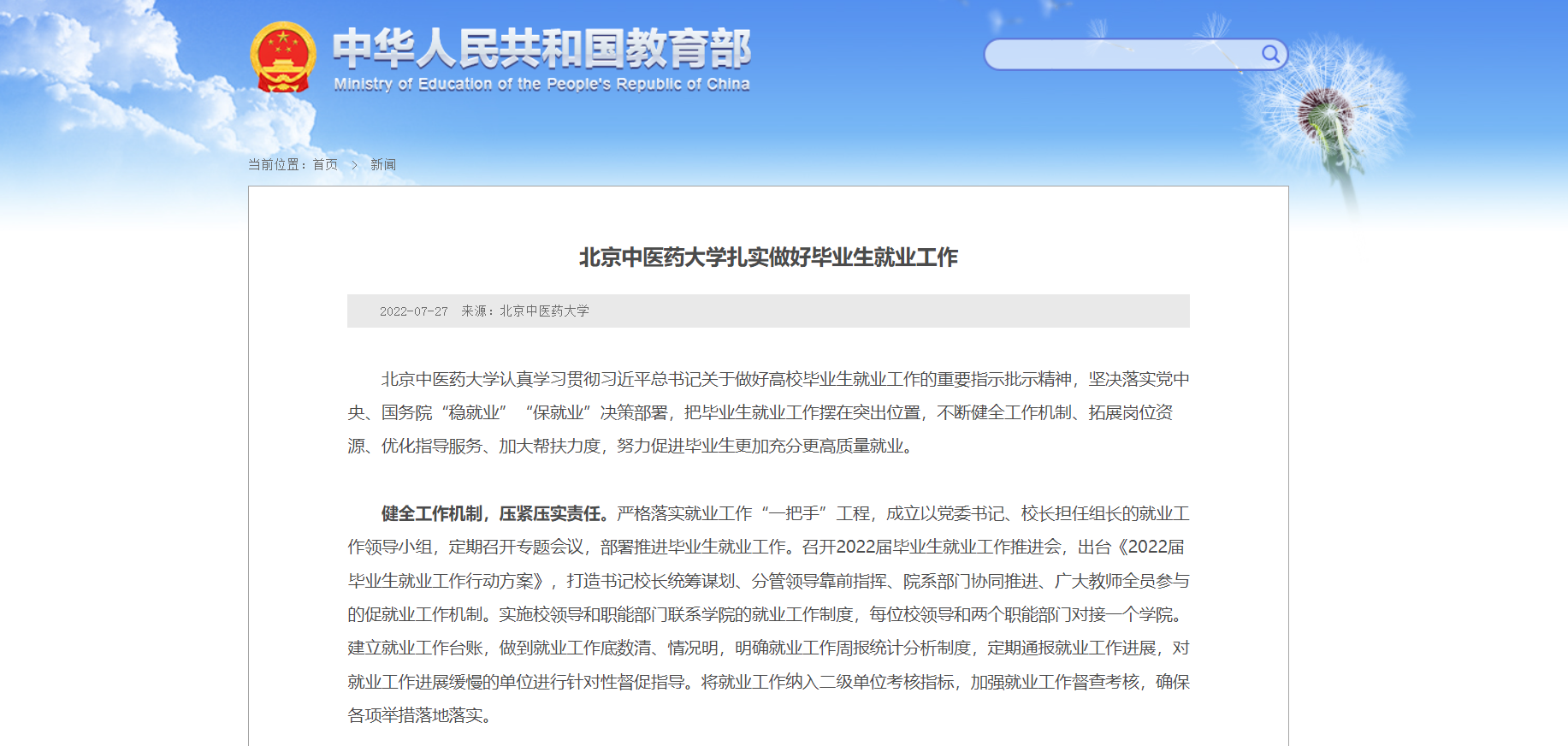 7月27日,教育部网站报道我校扎实做好毕业生就业工作,全文如下: