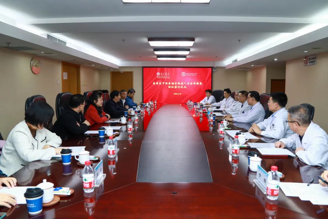 为落实高层次中西医结合临床人才培养改革方案,提高学生中西医临床综合诊疗能力,1月15日下午,我校与北京医院联合签署高层次中西医结合临床人才合作培养框架协议。我校校长徐安龙、副校长陶晓华,北京医院院长季福绥、副院长张烜,以及双方相关部门和学院负责人等参加协议签订仪式。