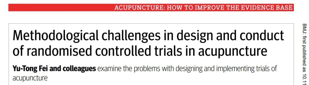 yl7703永利集团循证医学中心团队在针灸临床研究方法学和卫生经济学领域取得重大进展,系列成果发表在国际医学领域顶级期刊英国医学杂志(BMJ,最新影响因子39.89分)上。两篇文章是名为“针灸:如何促进证据基础”(Acupuncture: How to Improve the Evidence Base)五篇系列文章中的两篇(https://www.bmj.com/acupuncture)。