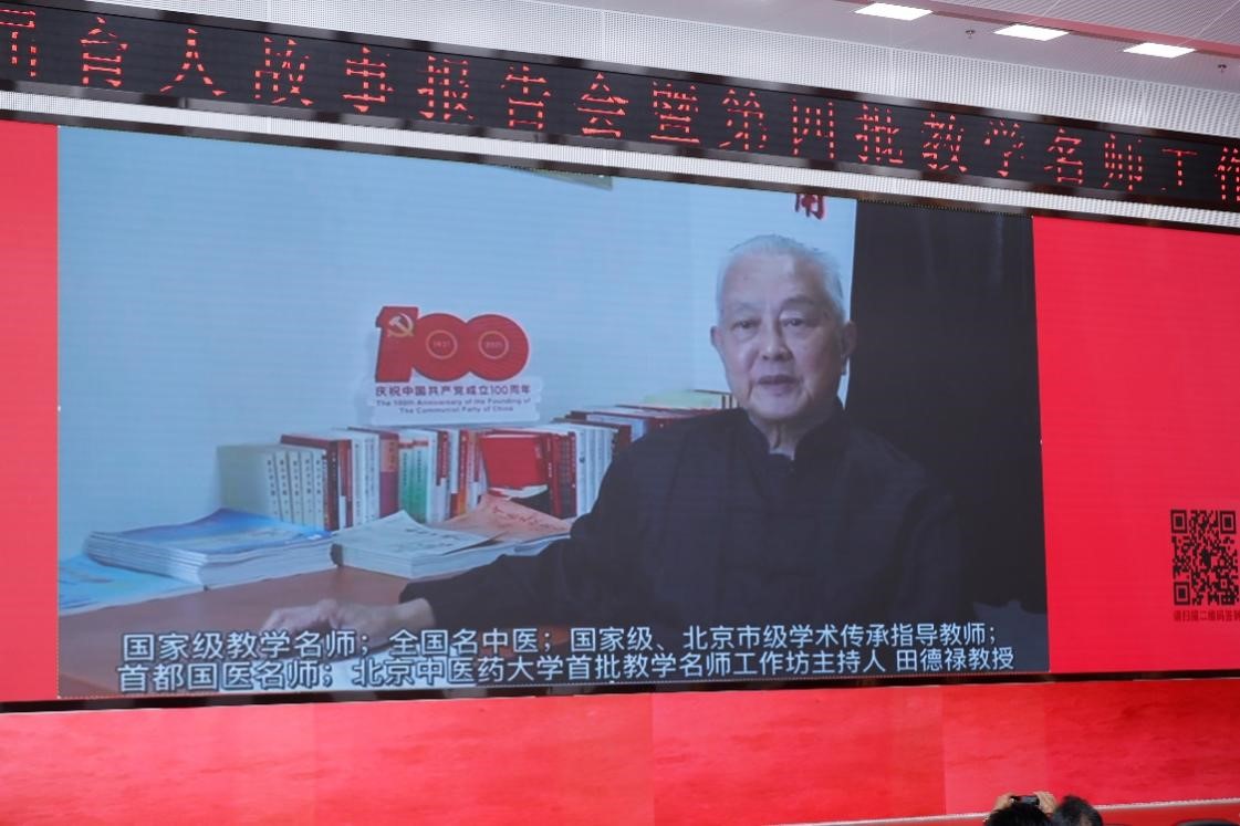 来自第一临床医学院的全国名中医、全国中医药高等教学名师田德禄先生以视频的方式和年轻教师分享了自身成长的重要经验以及教学名师工作坊的育人故事。年届耄耋之年的田老生动形象地叙述了他对中医的热爱以及中医对他的影响。他指出中医是科学的,理论是科学的,临床是科学的,要有文化自信。他强调一定要打好中医的基本功,只有扎实的基本功才能成为临床实践的坚实支撑。他教导年轻教师们一定要根据中医理论,以理立法、以法统方、以方遣药,全面加强辨证论治水平,才能提高临床能力,成为一名合格的临床教育工作者。